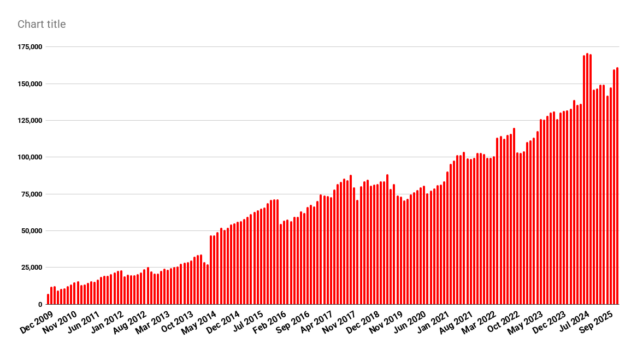 Šį mėnesį iš viso buvo 246 aktyvūs tinklai, iš kurių 190 skelbė statistiką. Šiuo metu iš viso seku 2589 tinklelius.